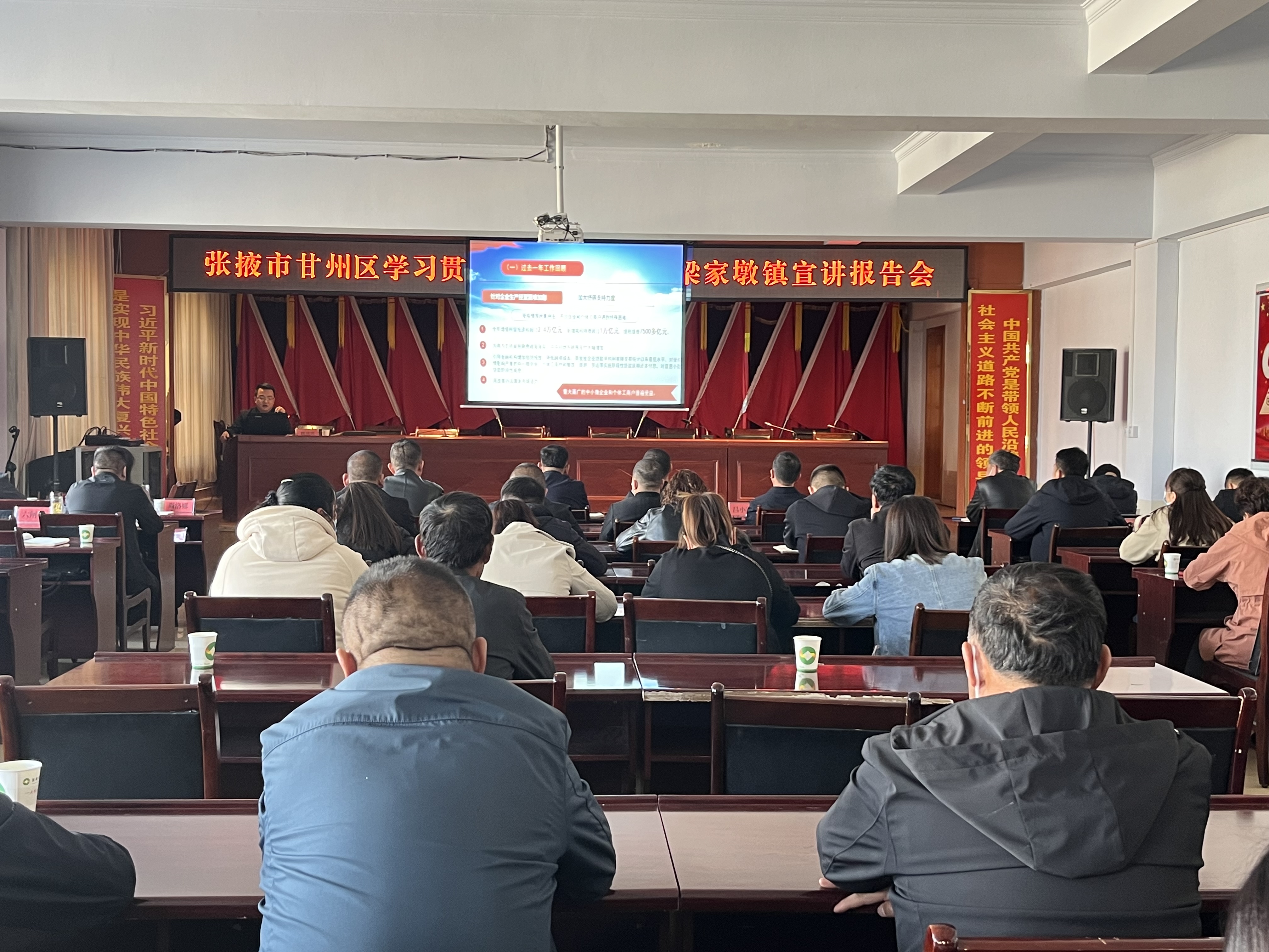 甘州融媒讯 3月29日,张掖市甘州区学习贯彻全国“两会”精神宣讲报告会走进梁家墩镇,镇机关全体领导干部,各村“两委”班子成员,社长参加了此次宣讲报告会。