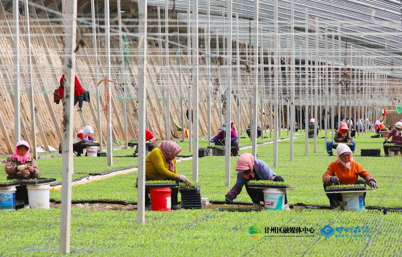 张掖甘州:育苗大棚间苗忙